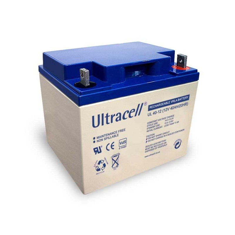 Suha baterija 12V/40Ah, proizvođač Ultracell, nominalna radna temperatura 25 ± 3°C, dizajnirana za životni vijek do 5 godina na temperaturi od 20°C, dimenzije (DxŠxV sa priključcima) 197x165x170 mm, težina 13,00kg